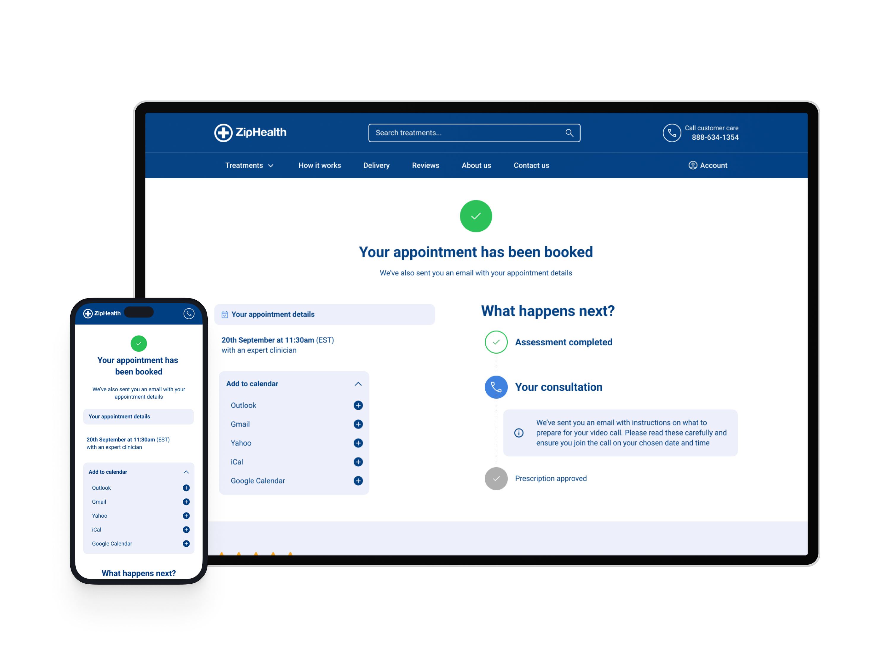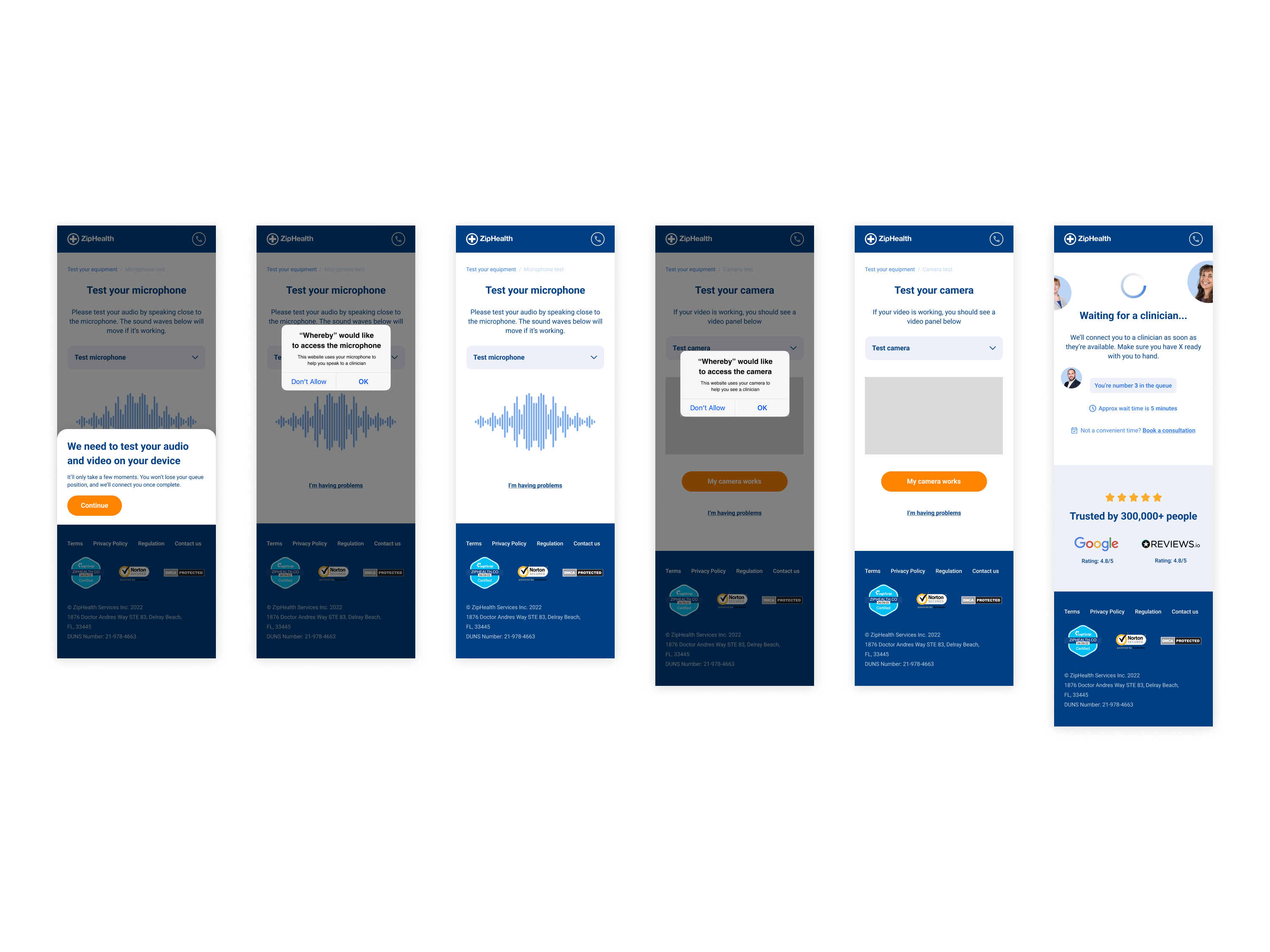 The ZipHealth audio visual consultation journey was designed to create a seamless, intuitive, and compliant experience for customers in the US seeking prescription treatment and medication online.
